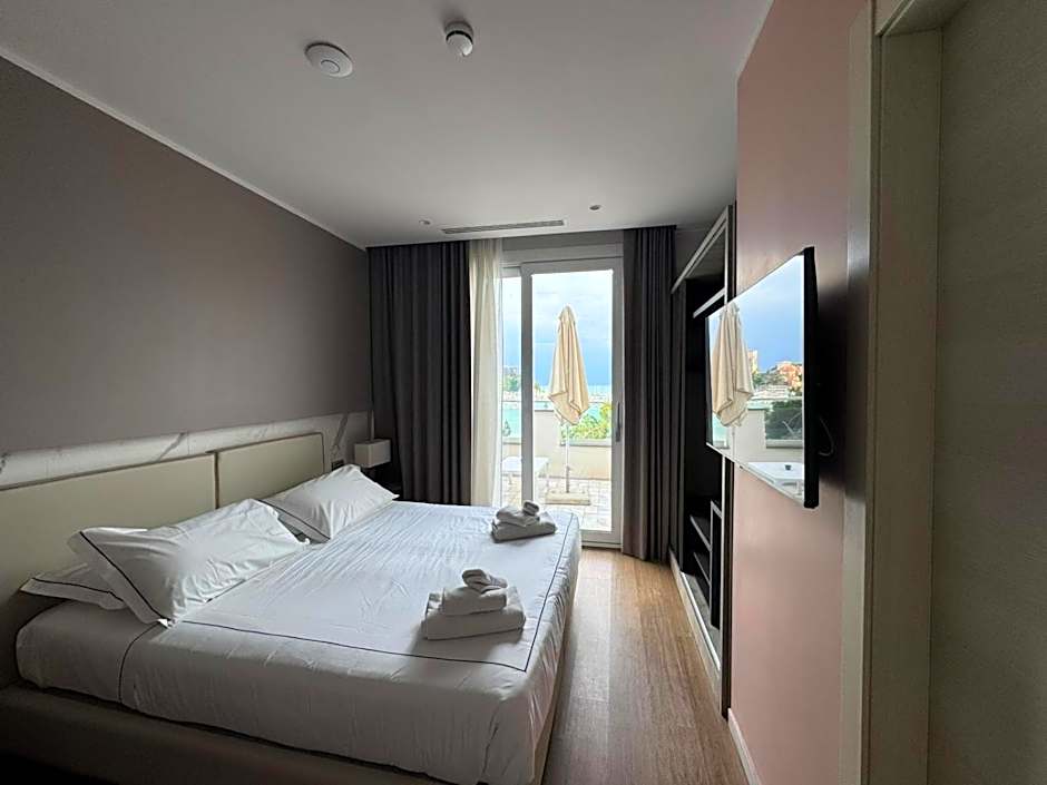 This air-conditioned double room is consisted of of a flat-screen TV with satellite channels, a private bathroom as well as a balcony with sea views.